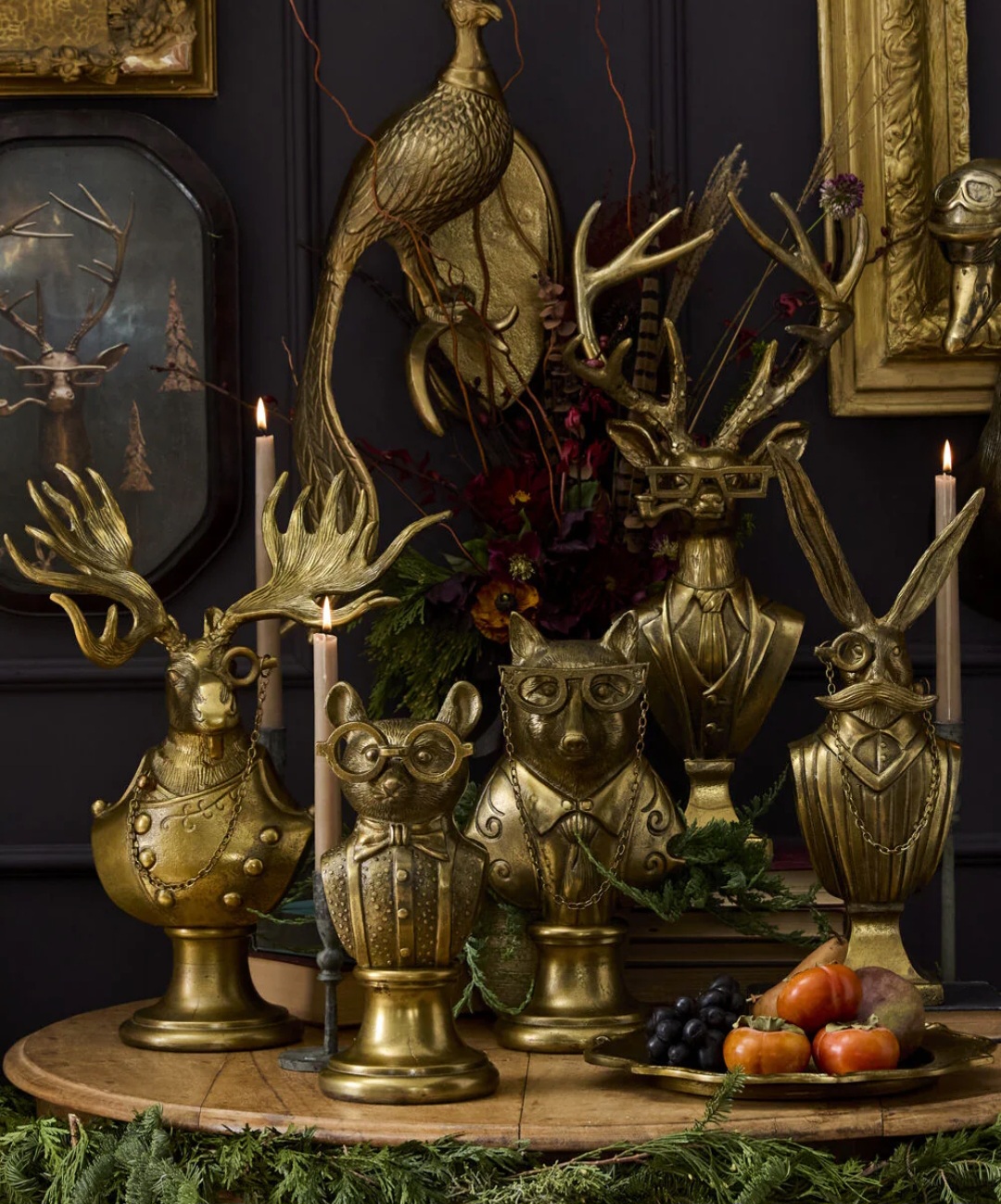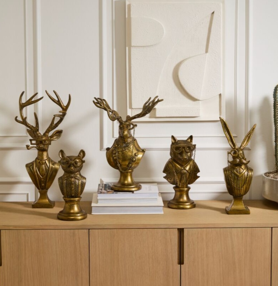 With his grand moustache, monocle, and an air of eccentric distinction, Eric the Hare is nothing short of unforgettable. His towering ears and antique gold finish lend him a commanding presence, while his chain-draped attire hints at a life of curious adventures and clever pursuits. Ever the raconteur, Eric brings a touch of wit and whimsy to shelves, libraries, and cultivated collections alike. Add a bit fairy tale charm to any shelf or tablescape. Specifications: 6.75″ x 17.75″ Metal with antiqued gold finish