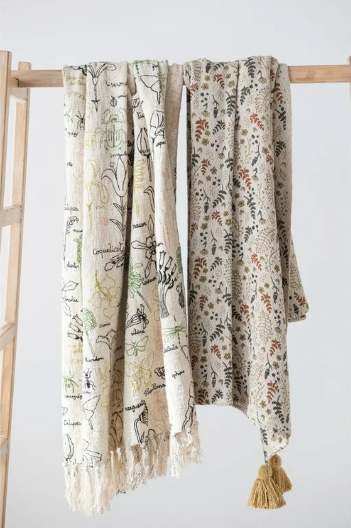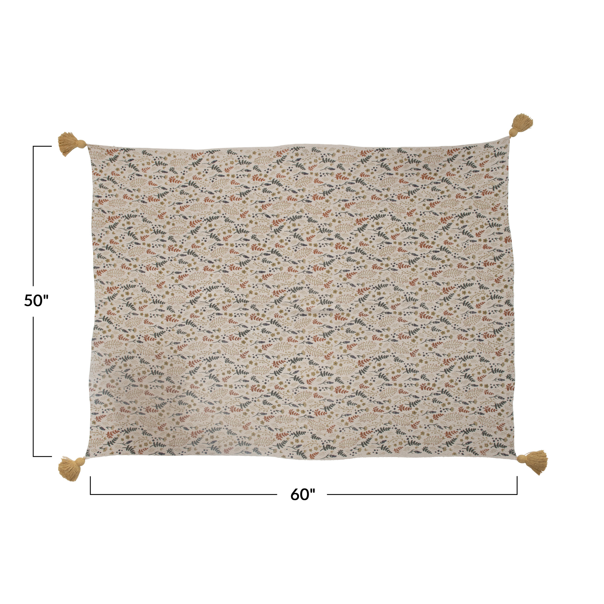 Add warmth and personality to your seating nooks with this woven, reclaimed cotton-blend, printed throw featuring a soft and cozy design. This throw is made from a reclaimed cotton blend, an eco-friendly fabric that offers comfort and durability. The throw features a neutral, multi-color floral print that adds a touch of elegance and simplicity, while the yellow tassels on the corners add a charming and personal touch. The throw is suitable for any space that needs texture and character, such as the living room, bedroom, office, or other area. It can also be an excellent gift for anyone who loves eclectic, bohemian, or global design. This throw measures 60 inches in length and 50 inches in width, making it easy to care for. Machine wash in cold water with a mesh bag. Tumble dry low. Do not bleach, iron, or dry clean. Add this woven reclaimed cotton blend printed throw with a floral pattern and tassels to the home and enjoy its beauty and functionality. Specifications: 60″L x 50″ W Woven Recycled Cotton Blend Printed Throw w/ Floral Pattern & Tassels, Multi Color